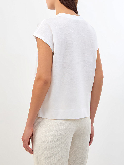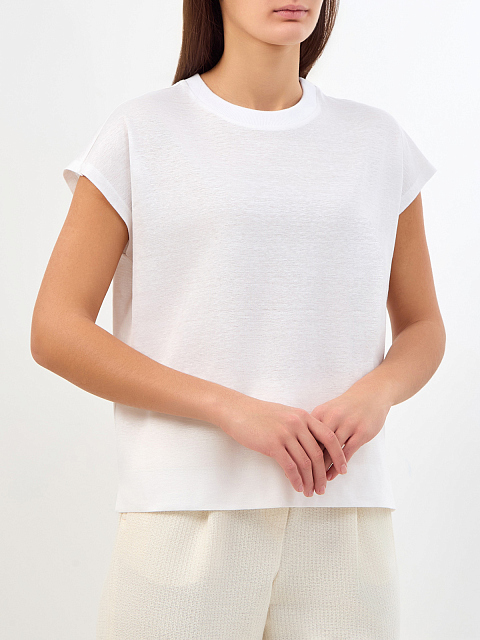 Свободная футболка из хлопка и льна с трикотажным воротом