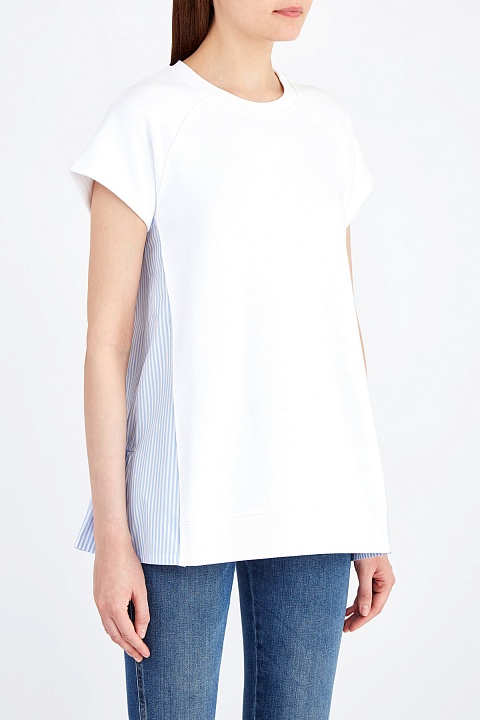 Футболка из плотного футера со вставками из поплина в полоску
