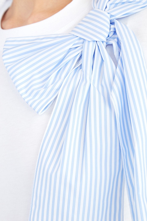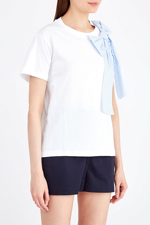 Хлопковая футболка с объемным бантом из поплина в полоску