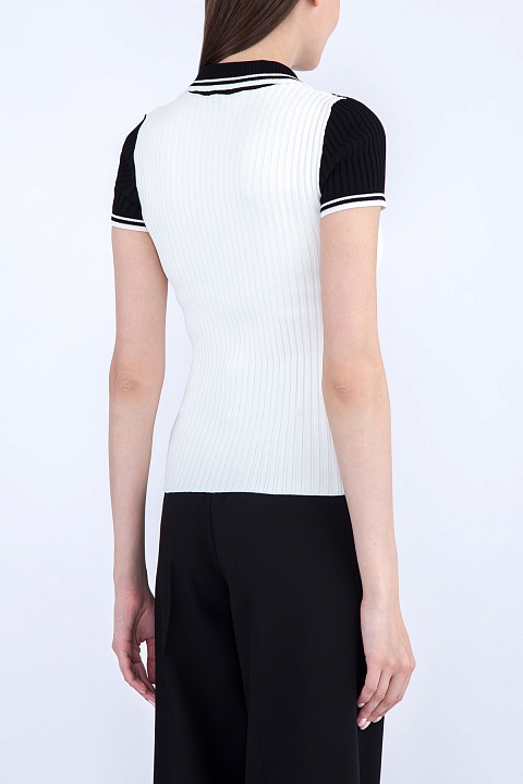 Поло из мягкого трикотажа в рубчик с контрастной отделкой и принтом