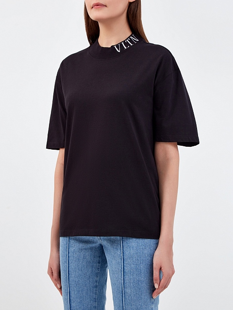 Футболка с жаккардовой вышивкой VLTN на вороте