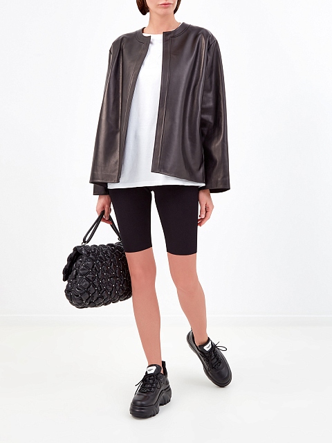 Однотонная футболка от Valentino представлена в базовом черном цвете. Для создания модели был выбран легкий хлопковый джерси — эластичная, гигроскопичная и дышащая ткань максимально подходит для создания повседневных образов. Минималистичный образ создает аппликация VLTN в тон изделию. Детали: круглый вырез, свободный силуэт, спущенная линия плеч. Сделано в Италии.