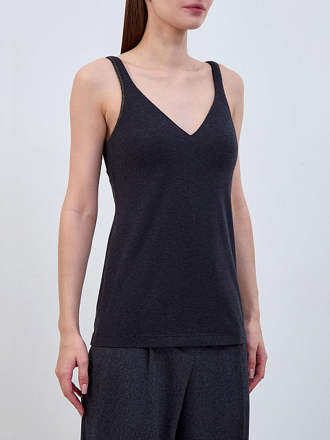 Хлопковый топ с V-образным вырезом и цепочками Мониль