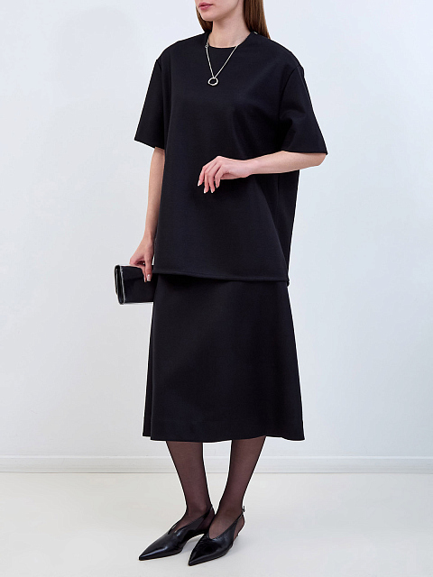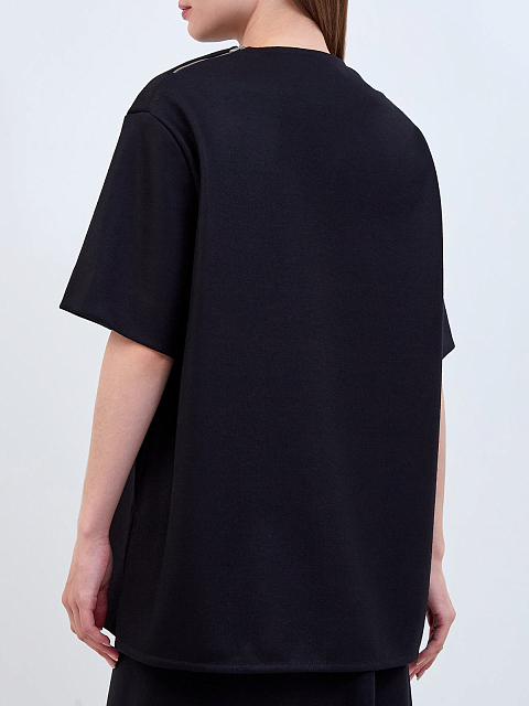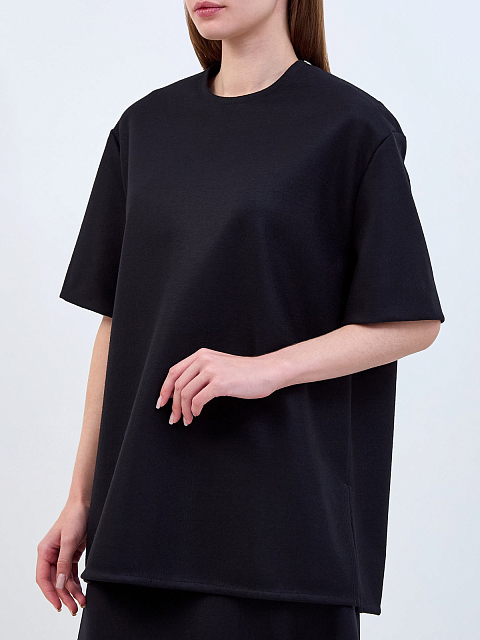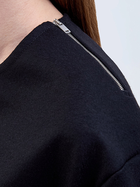 Шерстяной топ-oversize с разрезами и молнией на плече