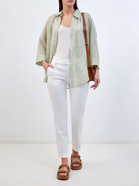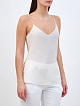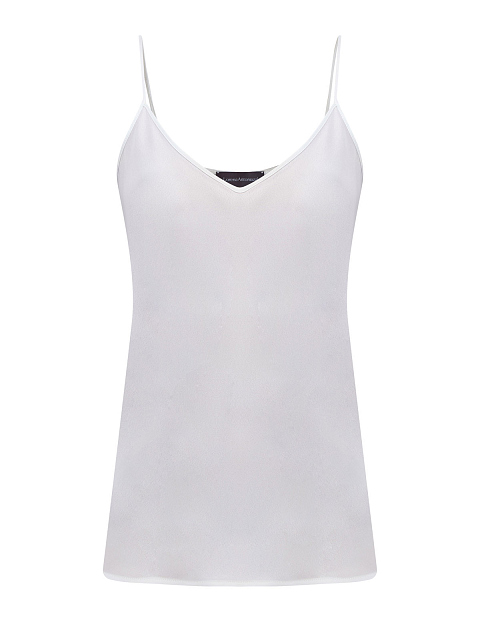 Элегантный топ от Lorena Antoniazzi создан из гладкого атласа на основе шелка и ацетата в белоснежном оттенке. Однотонное исполнение и минималистичный дизайн делает модель идеальной для составления повседневных образов. Изделие на тонких бретелях с глубоким вырезом декольте. Фирменный стиль подчеркивает миниатюрная деталь в виде звезды из перламутра на спинке. Сделано в Италии.