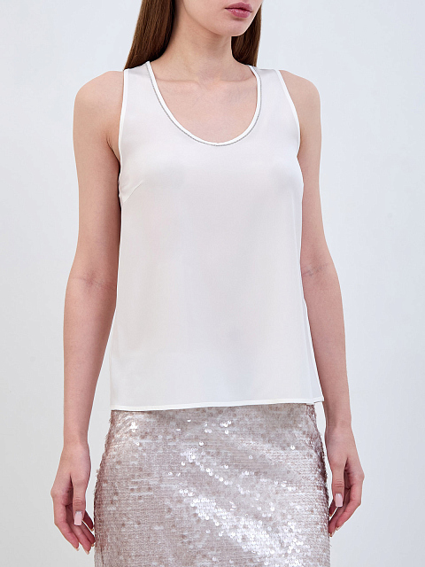 Топ из тонкой шелковой ткани с ювелирной окантовкой