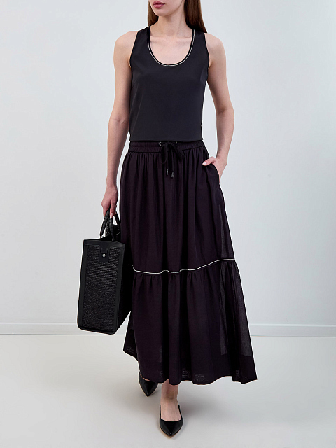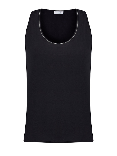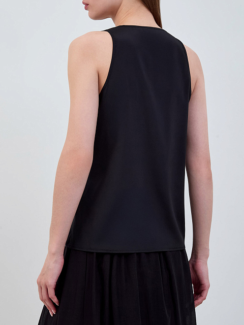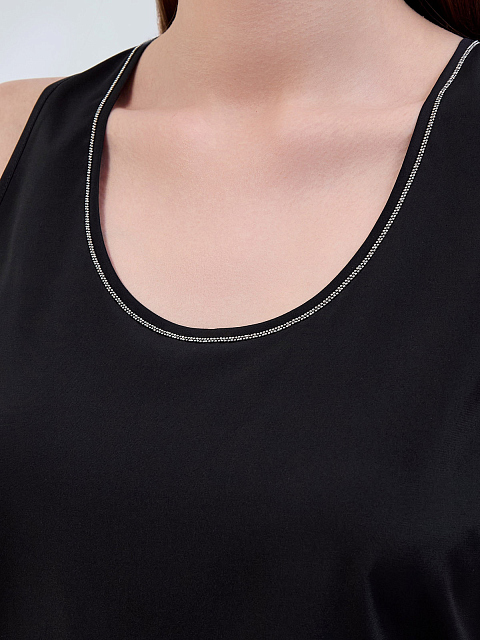 Однотонный топ из гладкого шелка с ювелирной окантовкой