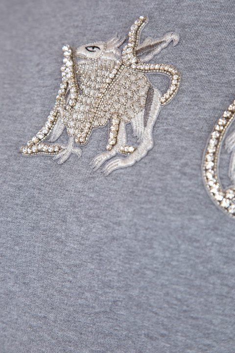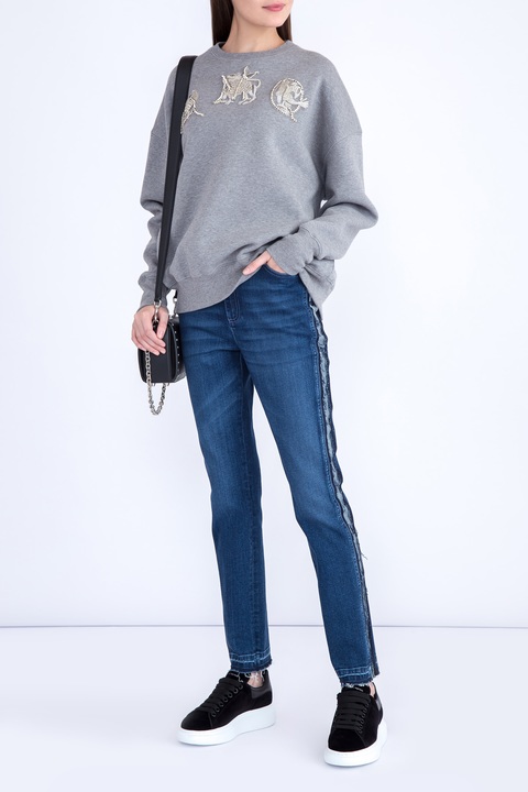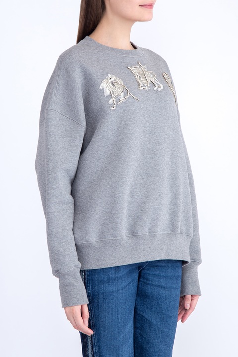 Свитшот из хлопкового футера с расшитыми аппликациями ручной работы