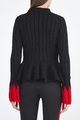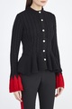 Кардиган в рубчик из шерсти с расклешенными манжетами и баской