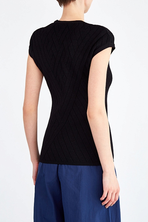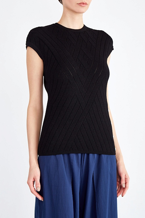Тонкий вязаный джемпер с эффектом плетения и перфорацией