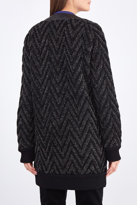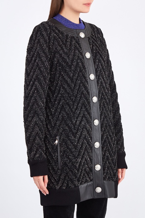 Удлиненный кардиган из фактурной пряжи с люрексом и отделкой из кожи