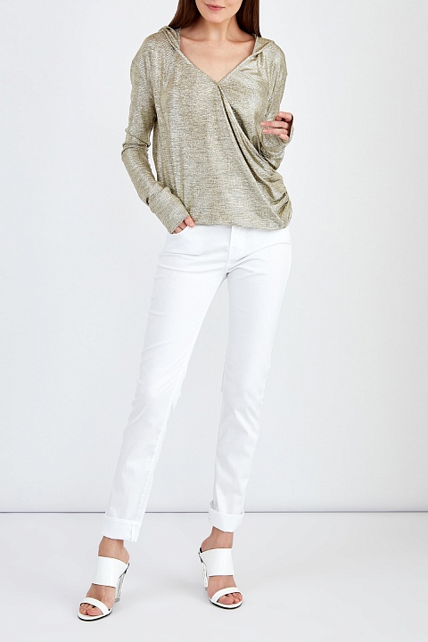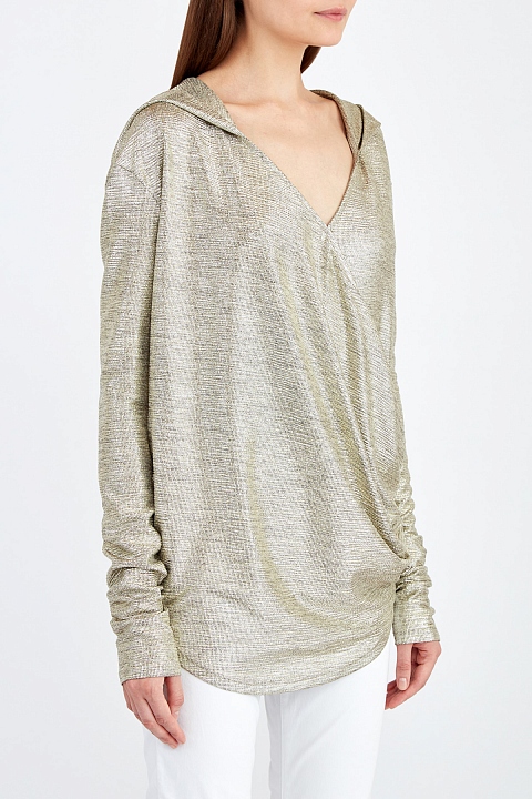 Джемпер с эффектом металлик, капюшоном и вырезом cache-coeur
