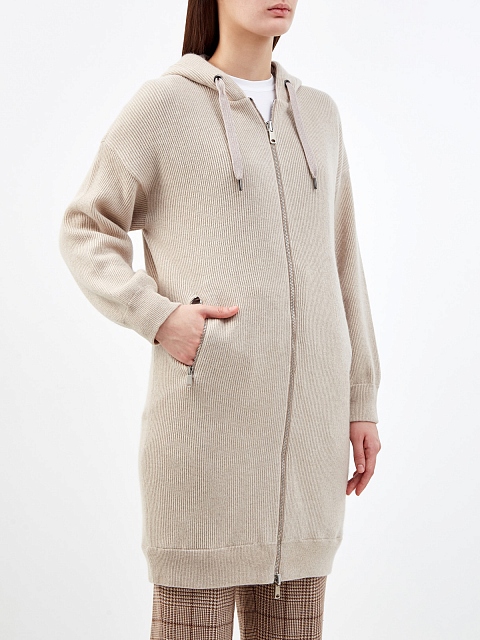 Стиль: Кардиганы, Длинный, Удлиненная, С капюшоном, На молнии, Однотонный
