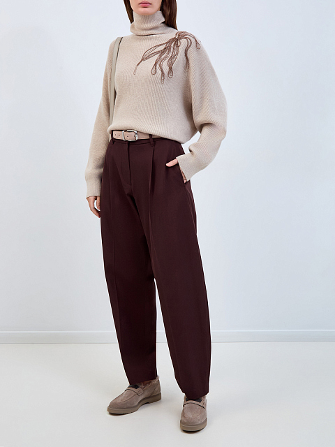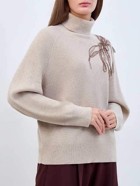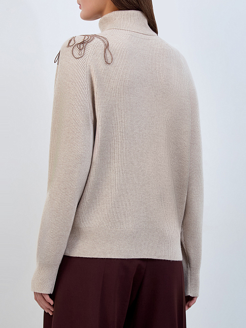 Кашемировый свитер с объемной вышивкой из цепочек Мониль