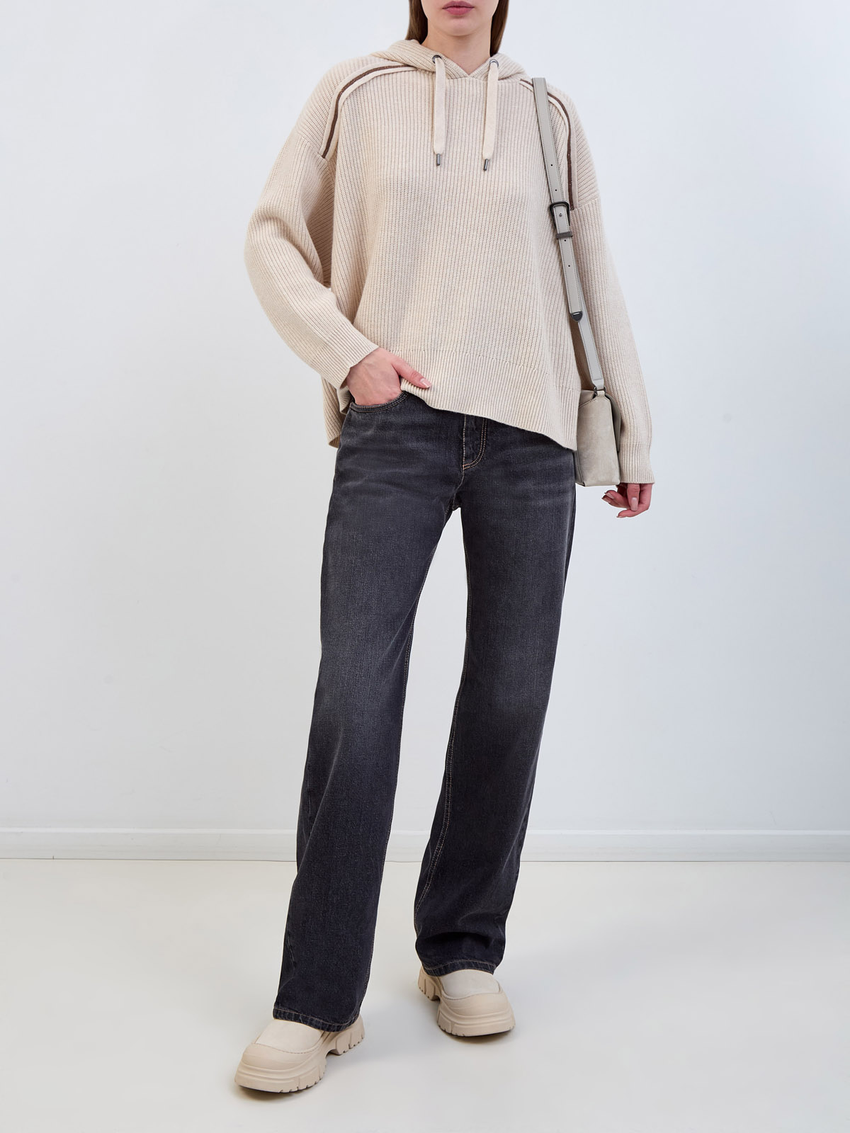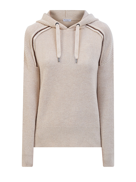 Уютное женское худи от Brunello Cucinelli создано из мягкого премиального кашемира в кремовом оттенке. Модель свободного кроя с регулируемым капюшоном на кулисках и спущенным плечевым швом. Трикотажные вставки, вышитые тонкими рядами блестящей цепочки Мониль, завершают модель женственным акцентом. Сделано в Италии.