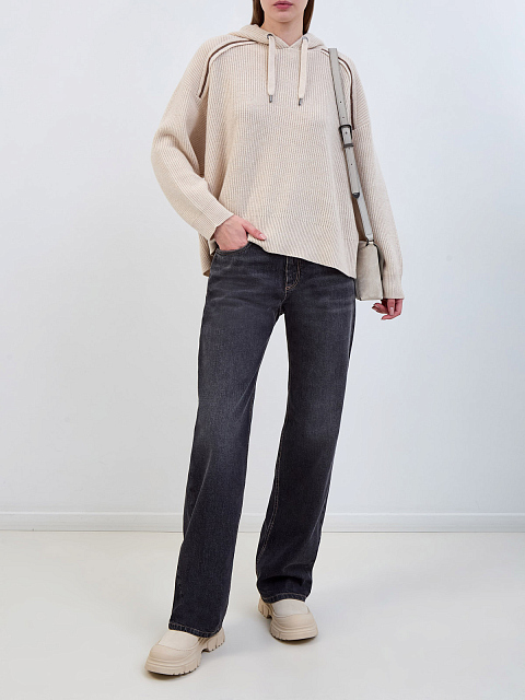 Вязаное худи из кашемира с ювелирными цепочками Мониль