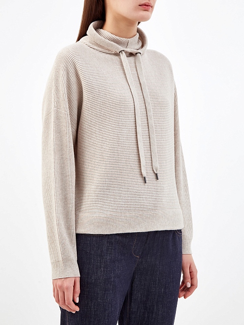 Джемпер Horizontal Rib из шерсти, кашемира и шелка с цепочкой Мониль