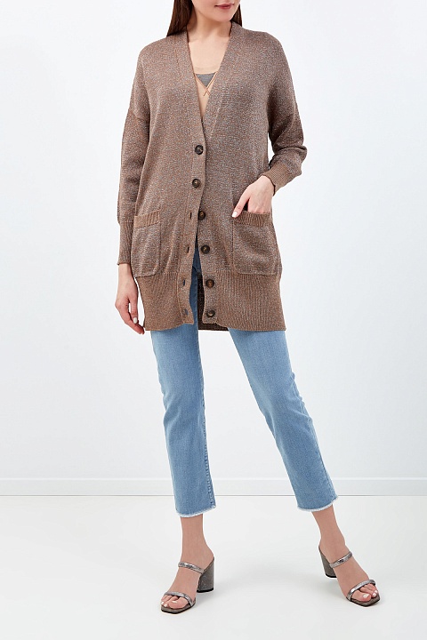 Мерцающий кардиган из хлопковой пряжи с карманами