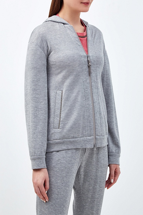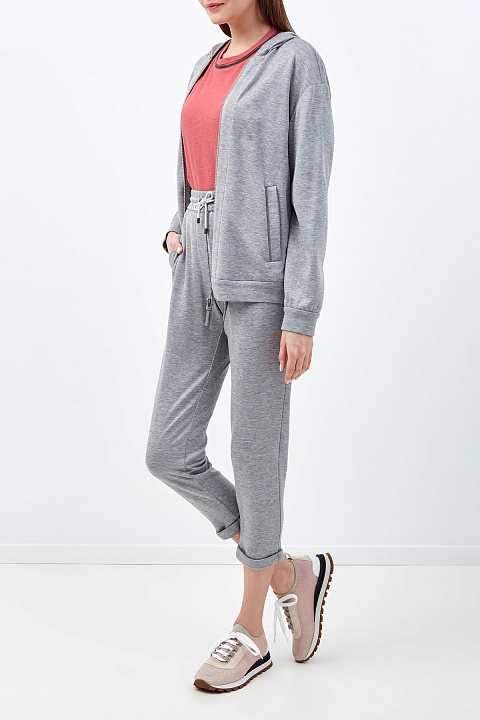 Базовая толстовка-oversize из коллекции для путешествий Travelwear от Brunello Cucinelli выполнена из хлопкового футера. Расслабленный стиль модели подчеркивает спущенная линия плеч, а фирменный штрих в образ вносит расшитый цепочками Мониль пуллер. Эластичная отделка манжет и нижнего края делает силуэт более объемным, обеспечивая свободу движений. Детали: прорезные карманы с ювелирной вышивкой, капюшон на кулиске. Сделано в Италии.
