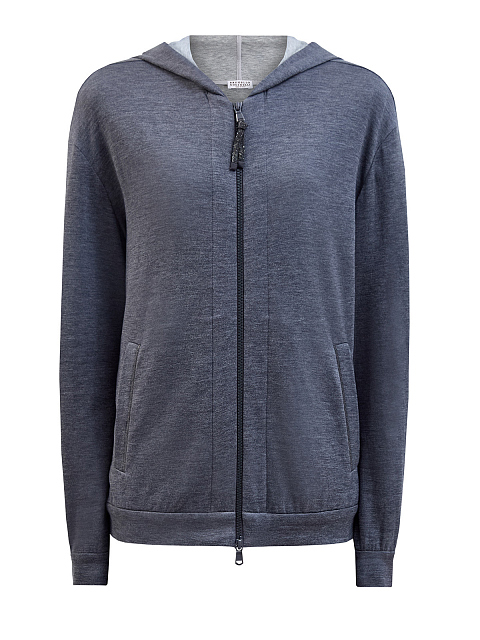 Базовая толстовка-oversize из коллекции для путешествий Travelwear от Brunello Cucinelli выполнена из хлопкового и шелкового футера. Расслабленный стиль модели подчеркивает спущенная линия плеч, а фирменный штрих в образ вносит расшитый цепочками Мониль пуллер. Эластичная отделка манжет и нижнего края делает силуэт более объемным, обеспечивая свободу движений. Детали: прорезные карманы с ювелирной вышивкой, капюшон на кулиске. Сделано в Италии.
