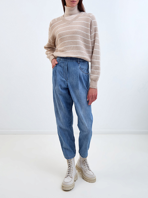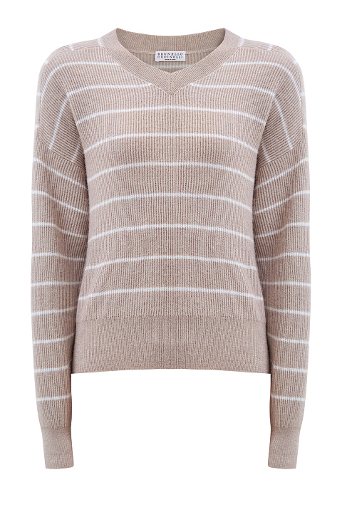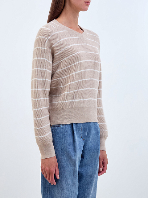 Пуловер из альпаки и хлопка в полоску с декором Мониль