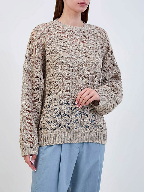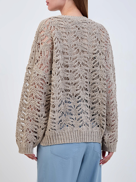 Джемпер Dazzling из льняной пряжи ажурной вязки с пайетками