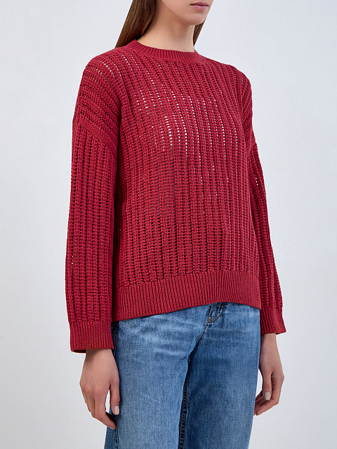 Джемпер из хлопковой пряжи ажурной вязки с цепочкой Мониль