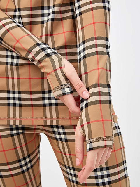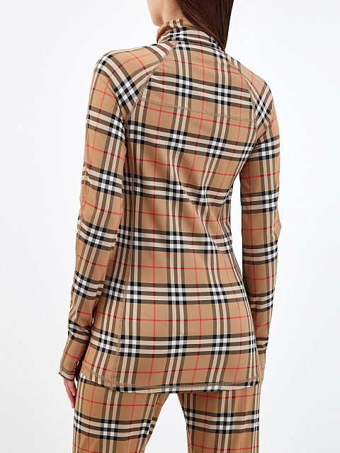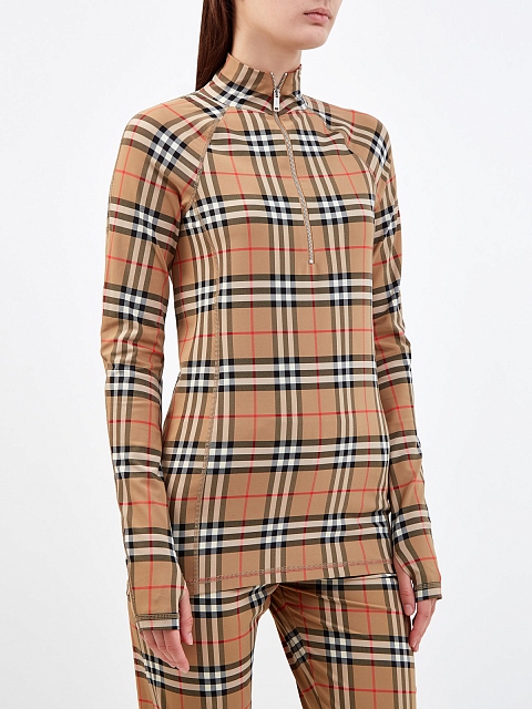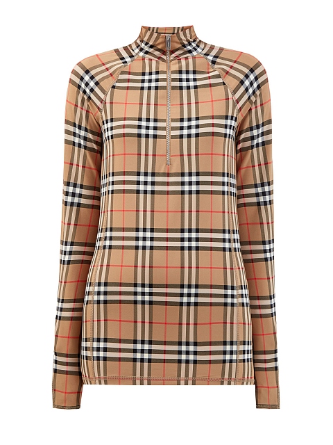 Эффектная женская водолазка от Burberry выполнена в фирменных коричневых тонах и дополнена принтом в культовую клетку Vintage Check. Эластичный материал повторяет движения тела и не образует складок, манжеты с митенками придают изделию акцент в стиле спортшик. Детали: длинные рукава, высокий ворот, застежка на молнию.