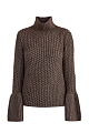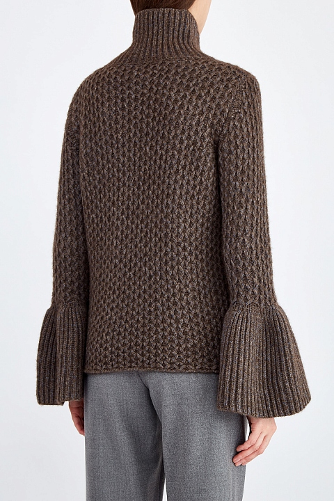 Свитер из шерсти яка с плетеным узором и воланами на рукавах