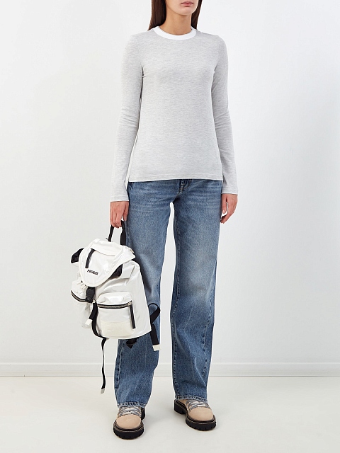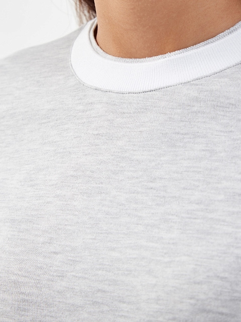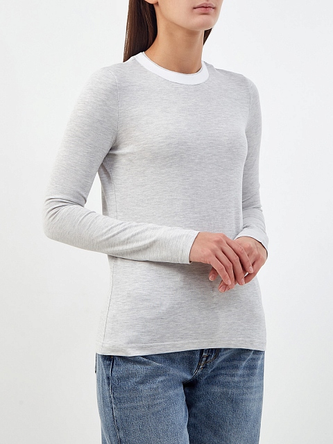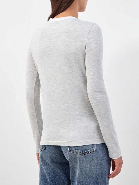Лонгслив из хлопкового джерси с контрастной окантовкой ворота