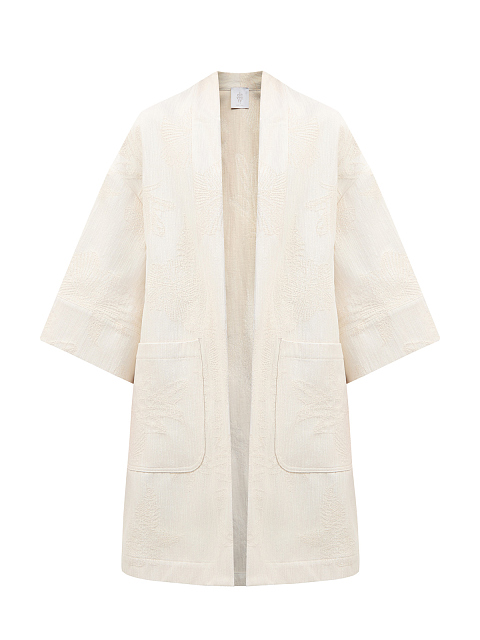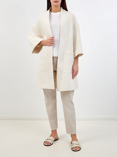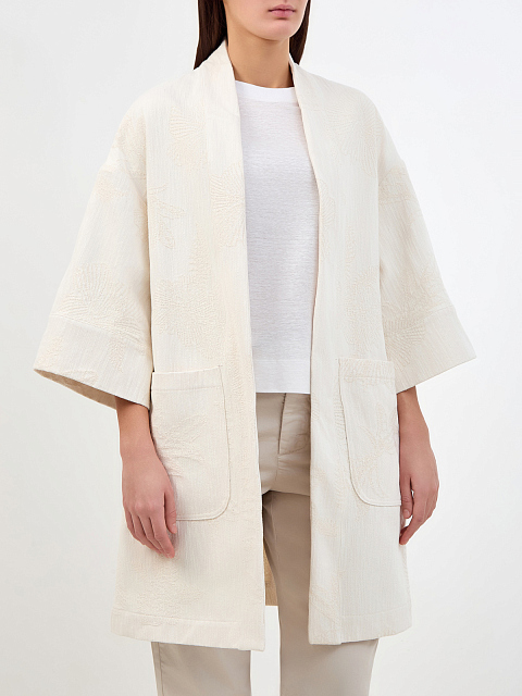 Удлиненный кардиган из хлопка с жаккардовой вышивкой в тон