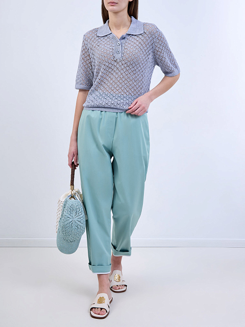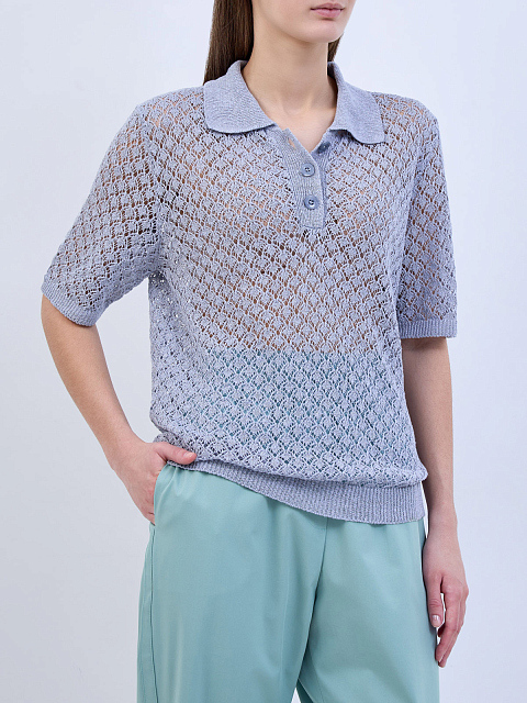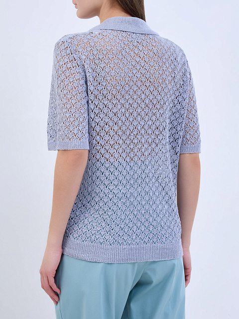 Легкий джемпер тонкой узорной вязки из льна и шелка