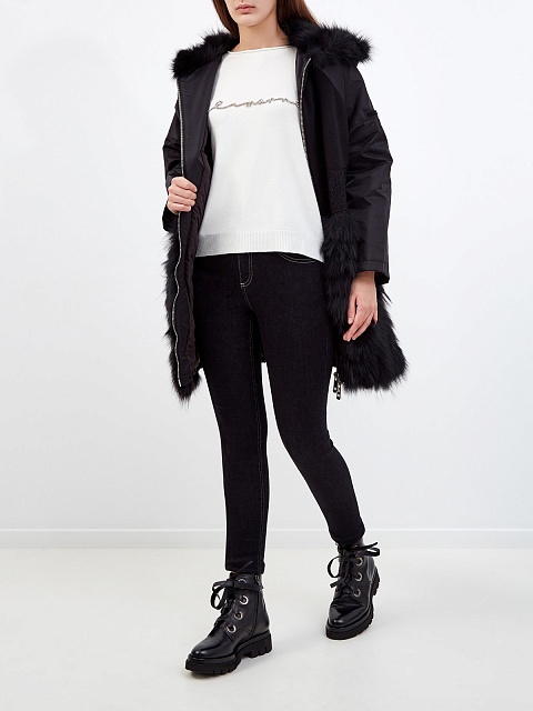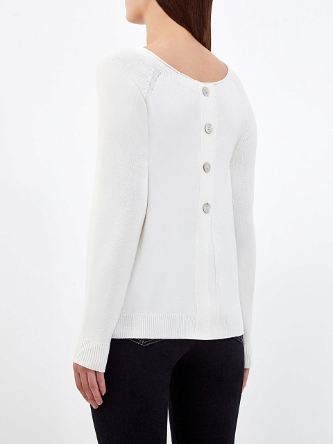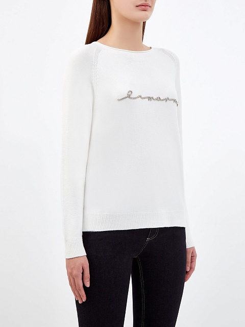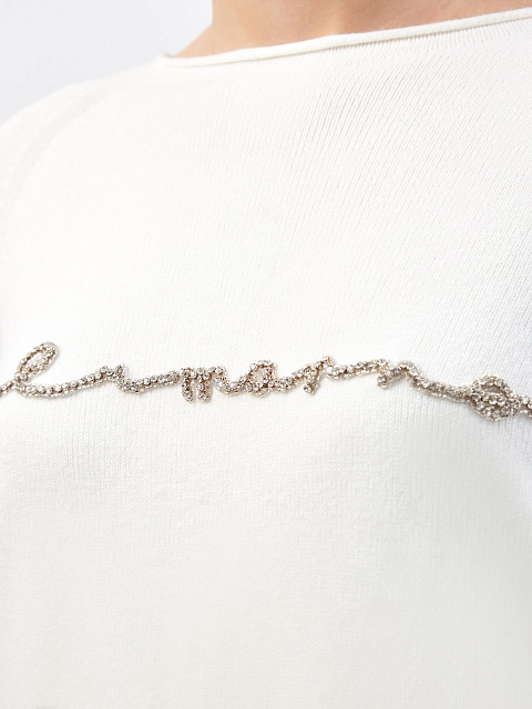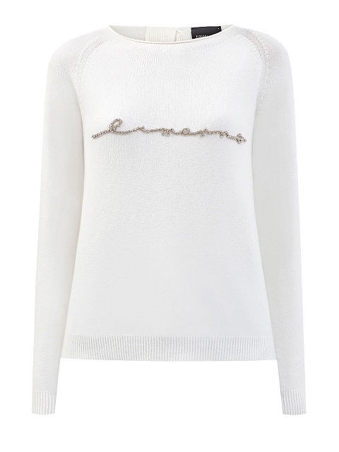 Джемпер в расслабленном стиле от Ermanno Ermanno Scervino создан из эластичной и мягкой вискозной пряжи. Нить ангорской шерсти в составе придает поверхности мягкий peach-эффект. Мерцающий акцент — вышитая вручную монограмма бренда из кристаллов и стекляруса, спинка дополнена пуговицами из перламутра. Детали: круглый вырез, длинные рукава. Сделано в Италии.