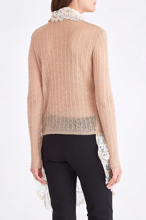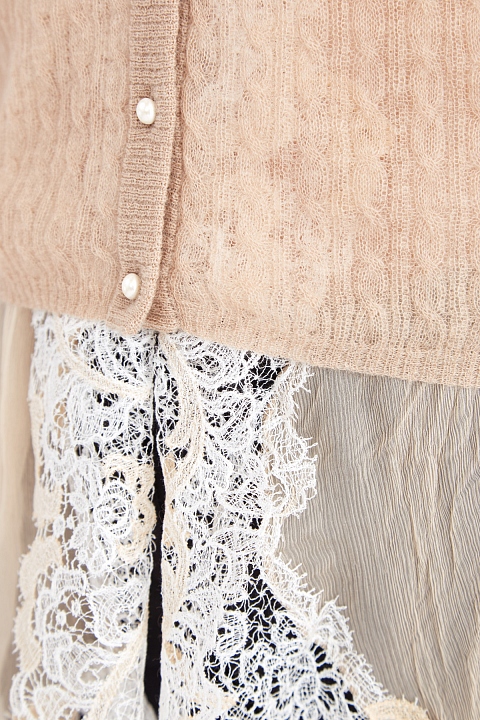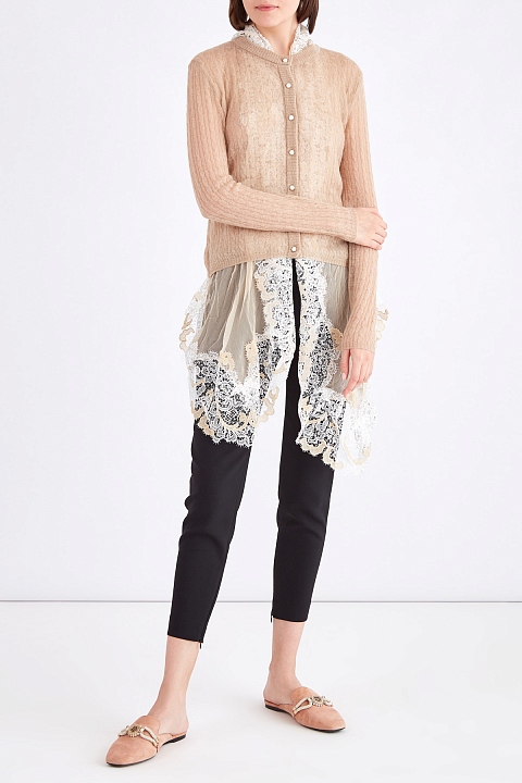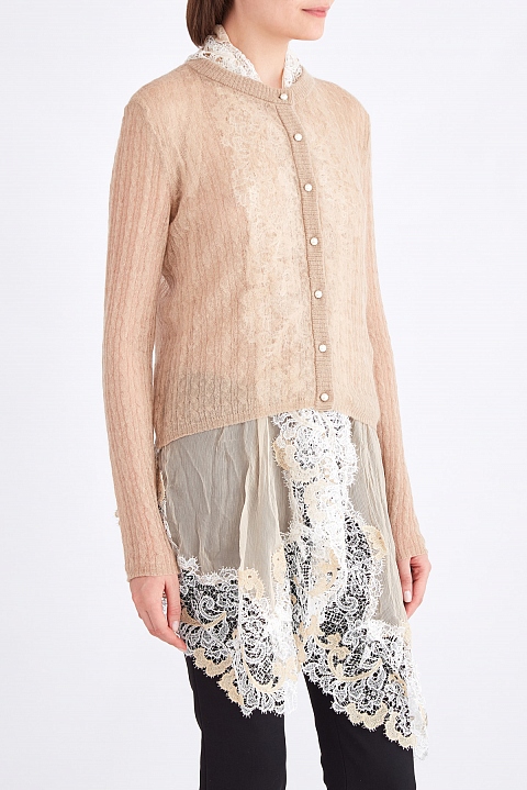 Тонкий кардиган из шерсти с асимметричной кружевной отделкой