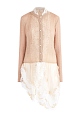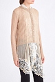Эффектный женский кардиган из весенне-летней коллекции Ermanno Scervino выполнен из пряжи на основе мягкого мохера и теплой шерсти с фактурным вязаным узором косами в нежном песочно-бежевом оттенке. Передняя планка декорирована элементом из воздушной ткани с окантовкой кружева, который образует шалевый воротник и продолжается по нижней кромке, создавая эффект многослойного образа. Модель с застежкой на пуговицы благородного жемчужного тона. Обрамленные резинкой английской вязки кромки завершают изделие. Сделано в Италии.