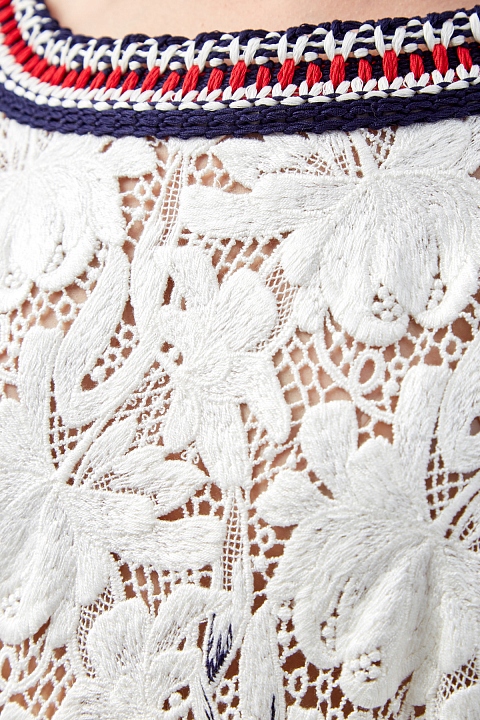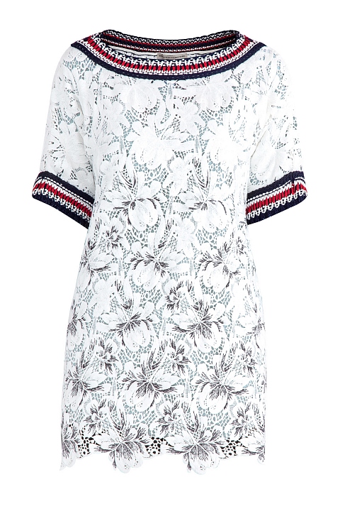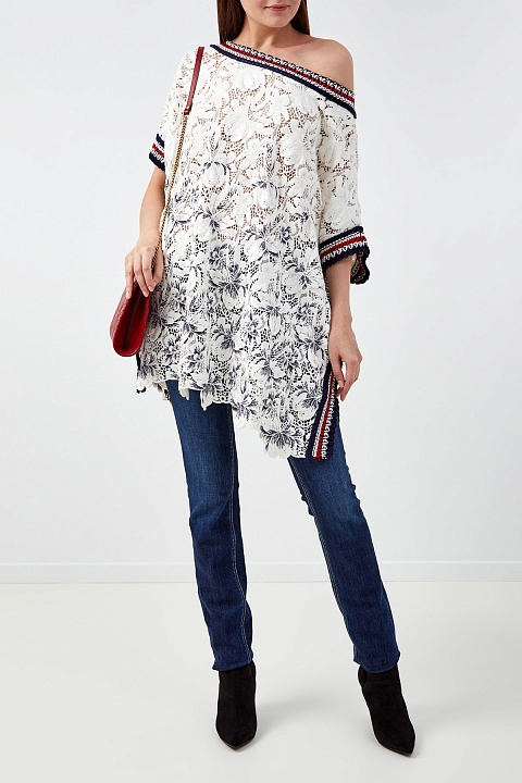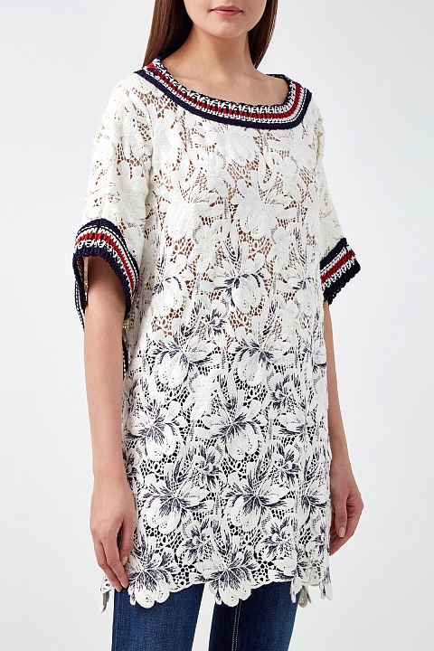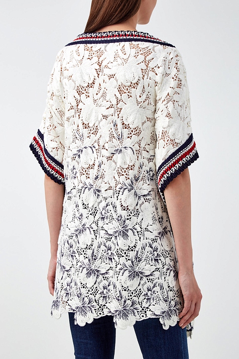 Джемпер удлиненного кроя из цветочного кружева с вязаной отделкой