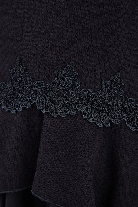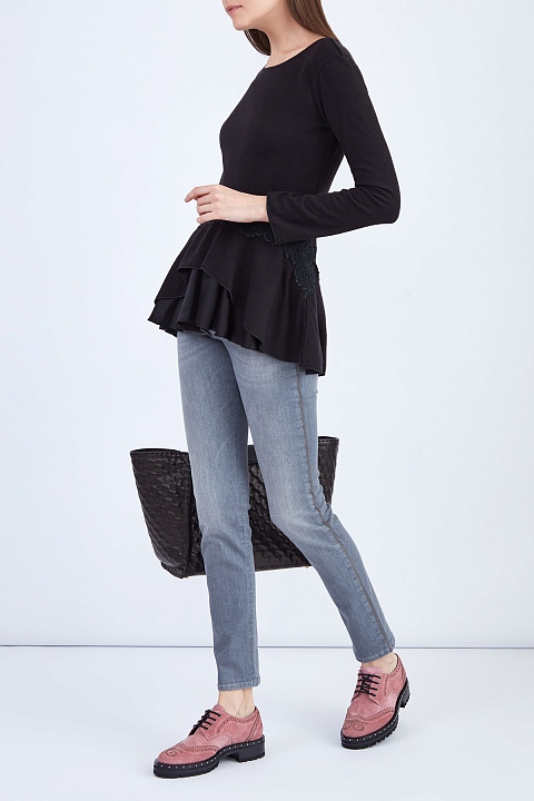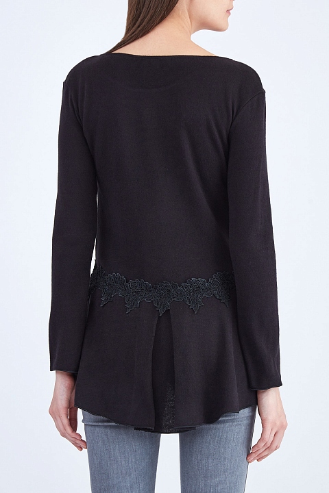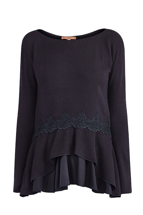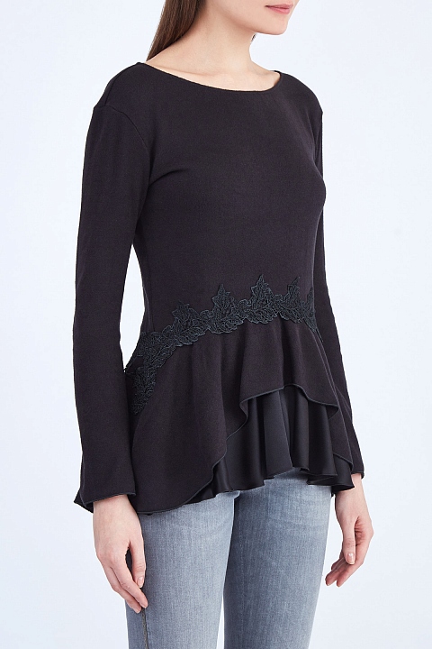 Джемпер из хлопка и шерсти с атласной баской и кружевом макраме
