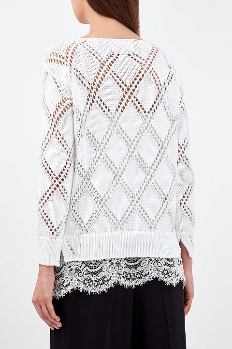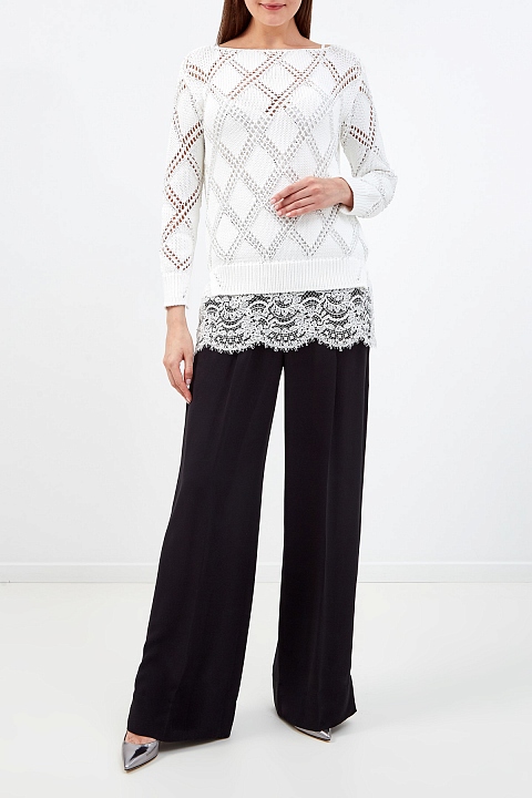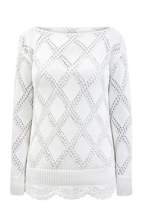 Джемпер из тонкой пряжи с интарсийным узором и кружевным декором