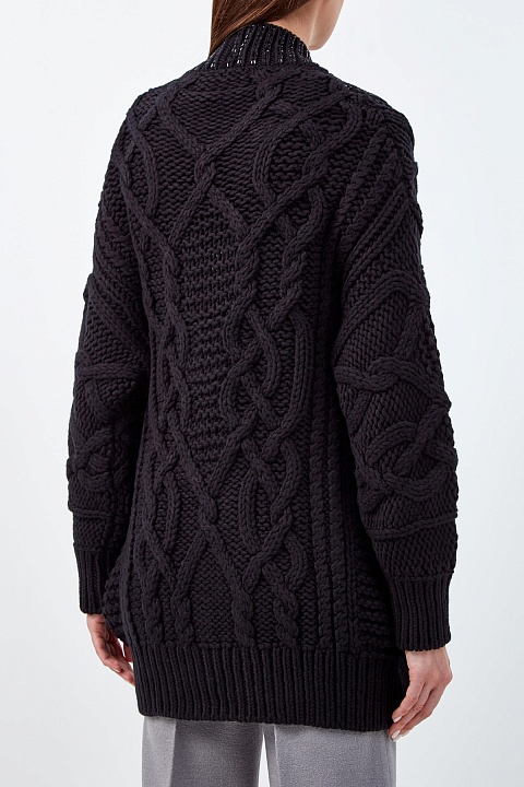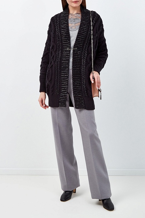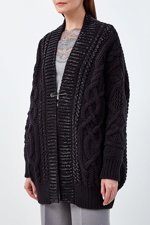 Объемный кардиган из шерстяной пряжи с брошью