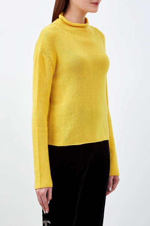 Яркий джемпер от Ermanno Scervino полностью выполнен из кашемировой пряжи. Натуральный материал обладает свойством сохранять тепло, а бесшовное соединение деталей кроя обеспечивает максимальный комфорт. Изделие с широким высоким воротом и длинными рукавами. Свободный крой и лаконичный дизайн создает повседневный образ в расслабленном стиле. Сделано в Италии.