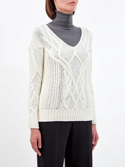 Джемпер с фактурным вязаным узором и отделкой кристаллами