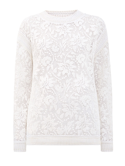 Женственный джемпер от Ermanno Scervino выполнен из хлопковой пряжи в белом цвете. Ажурная вязка ручной работы в тонкой технике макраме подчеркивает элегантный стиль изделия. Эластичная отделка кромок и свободный крой завершают лаконичный дизайн. Детали: круглый вырез горловины, длинные рукава. Сделано в Италии.