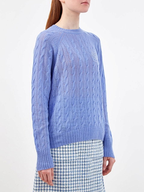 Элегантный женский джемпер от Etro создан вручную из невесомой пряжи на основе ценных волокон кашемира. Узорная вязка и полностью натуральный состав делают модель универсальным элементом расслабленных повседневных образов. Фирменный штрих — вышитый логотип бренда в тон на передней планке. Сделано в Италии.