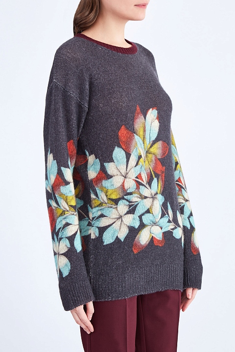 Джемпер oversize-кроя из кашемировой пряжи с цветочным принтом