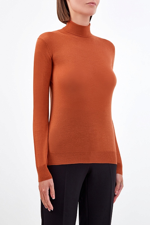 Минималистичная водолазка от Etro. Изделие выполнено в теплом оттенке «охра», который органично дополнит образы как в деловом, так и повседневном расслабленном стиле. Полностью натуральный состав делает модель идеальной для холодного времени года, а высокий двухслойный воротник обеспечивает защиту от ветра. Детали: слегка облегающий силуэт, эластичная отделка кромок. Сделано в Италии.