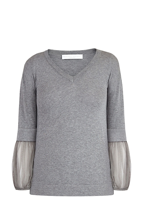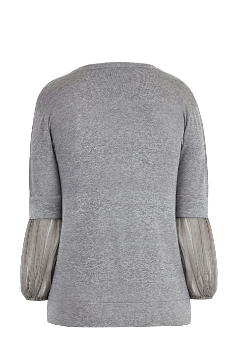 Джемпер из хлопковой пряжи с пышными манжетами из вуали