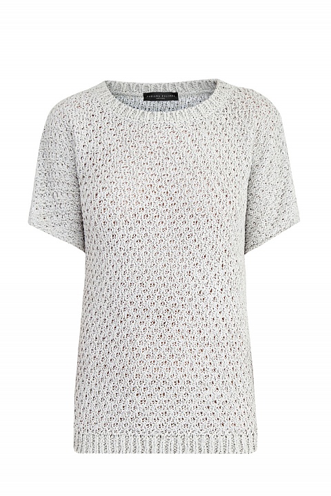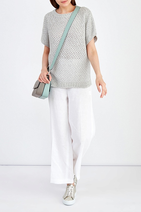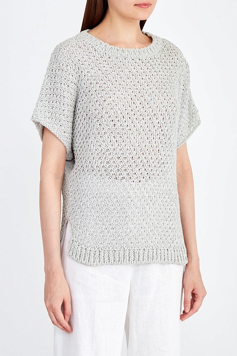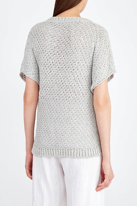 Джемпер кружевной вязки из хлопка и льна с вплетенными пайетками