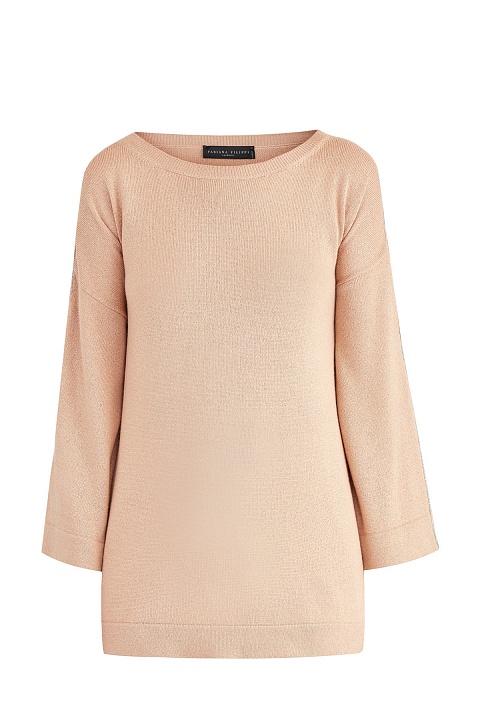 Мерцающий джемпер в стиле спортшик от Fabiana Filippi полностью выполнен из кашемировой пряжи оттенка «румяна». Гладкая поверхность в технике чулочной вязки подчеркнута серебристой нитью люрекса. Расслабленный образ создают вручную расшитые мерцающими бусинами лампасы, а также спущенная линия плеч. Детали: объемная отделка кромок, овальная пройма горловины. Сделано в Италии.