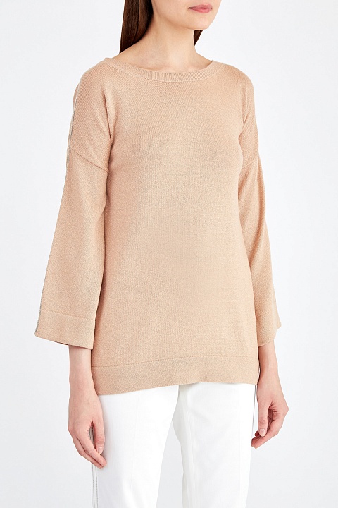 Джемпер из кашемировой пряжи с люрексом и расшитыми лампасами