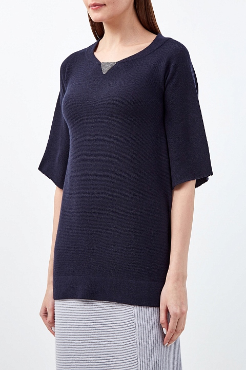 Джемпер из кашемира с короткими рукавами и вышивкой